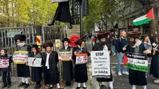في المقابل، برز حضور رمزي لأفراد من “ناتوري كارتا”، الذين ارتدوا الزي الديني الأرثوذكسي ورفعوا لافتات تقول: “نحن يهود لكن لا نعترف بإسرائيل”، مؤكدين أن قيام دولة لليهود قبل قدوم المسيّا هو مخالفة صريحة للتوراة.