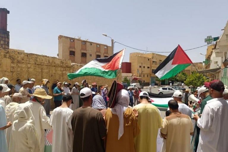 وتابع الرياحي: “الشعب المغربي يرتبط ارتباطا تاريخيا بالقضية الفلسطينية، كيف لا وللمغاربة ‘باب’ بالمسجد الأقصى المبارك و’حارة’ اختلطت فيها الدماء الفلسطينية بالمغربية؟”، ثم أردف: “هذه الفعاليات رسالة شجب واستنكار لتخاذل المنتظم الدولي والأنظمة العربية الرسمية الشريكة في هذه الجرائم؛ فكيف يعقل أن تصمت إزاء الجرائم الوحشية غير المسبوقة، بالإضافة إلى ما يمارسه الكيان المجرم من تجويع ومحاولات للتهجير، ومن مصائد للموت بالموازاة مع ما يقدمه من مساعدات قليلة جدا؟”.