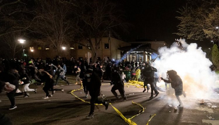 واحتشد مئات من المحتجين الغاضبين خارج مقر شرطة منطقة بروكلين سنتر مساء الأحد مما دفع الشرطة لإطلاق الرصاص المطاطي.