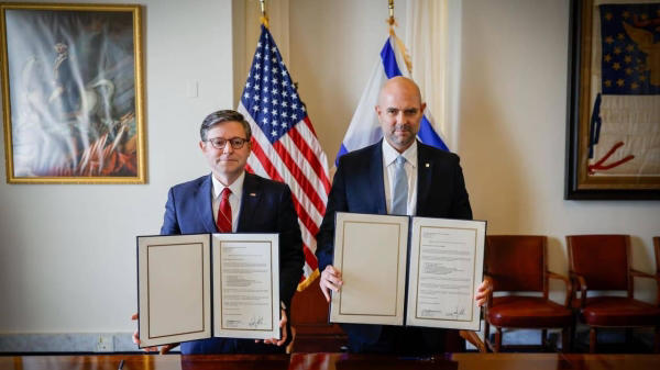 في خطوة تعكس تنسيقًا برلمانيًا دوليًا غير مسبوق، أطلق رئيس الكنيست أمير أوحانا ورئيس مجلس النواب الأميركي مايك جونسون، يوم الثلاثاء، مبادرة عالمية تهدف إلى ترشيح الرئيس الأميركي دونالد ج. ترامب لجائزة نوبل للسلام لعام 2026.وخلال لقائهما في مبنى الكابيتول للمرة الأولى منذ دخول وقف إطلاق النار حيّز التنفيذ، وقّع الزعيمان رسالة مشتركة يدعوان فيها لجنة نوبل إلى الاعتراف بما وصفاه بـ«الإسهامات الفريدة للرئيس ترامب في تعزيز السلام العالمي».