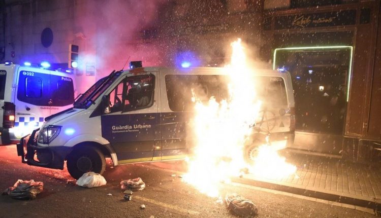 طاردت الشرطة في برشلونة، مساء السبت، المتظاهرين بعد أن ألقوا زجاجات حارقة، وأشعلوا النار في سيارة تابعة للشرطة، وحطموا واجهات المتاجر والبنوك.