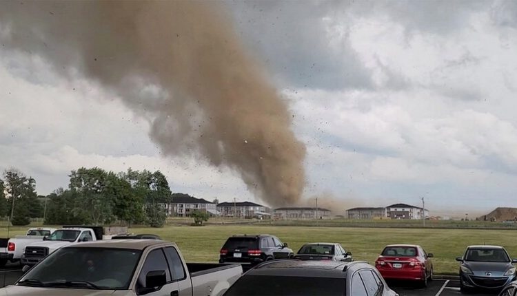 وتداول السكان المحليون ووسائل الإعلام مقطع فيديو يظهر كيف يجتاح الإعصار كل شيء في طريقه، وينثر شظايا المباني في الهواء.