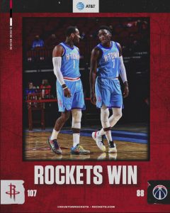 أحرز جون وول 24 نقطة، وأضاف إيريك غوردون، وفيكتور أولاديبو، 20 نقطة لكل منهما، ليواصل هيوستون روكتس نتائجه الإيجابية، ويفوز 107-88 على واشنطن ويزاردز، في دوري كرة السلة الأميركي للمحترفين، رافعاً رصيده إلى 3 انتصارات متتالية في أفضل سلسلة نتائج للفريق خلال الموسم الجاري.