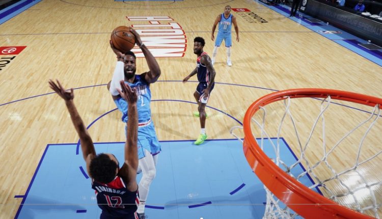 وفي الجهة المقابلة، أحرز برادلي بيل، متصدر قائمة المسجلين في المسابقة هذا الموسم 33 نقطة، بينما أضاف زميله راسل وستبروك، المنتقل إلى ويزاردز في صفقة تبادلية مع وول، 19 نقطة، واستحوذ على 11 كرة مرتدة، كما مرر 7 كرات حاسمة.