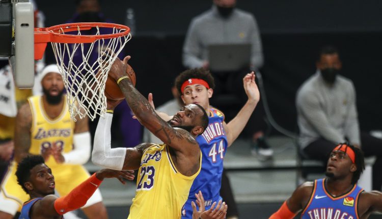 احتاج لوس أنجلوس ليكرز حامل اللقب إلى شوط إضافي لتحقيق فوزه الخامس توالياً، وتخطي عقبة ضيفه أوكلاهوما سيتي ثاندر 119-112 في دوري كرة السلة الأميركي للمحترفين.