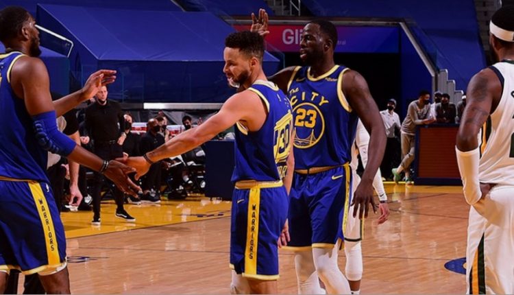 أوقف غولدن ستيت ووريورز سلسلة من 4 هزائم متتالية وفاز 131-119 على يوتا جاز في دوري السلة الأميركي للمحترفين .