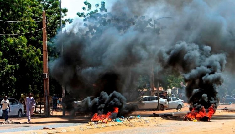 آخرون شارعا رئيسيا في مدينة ام درمان المجاورة،