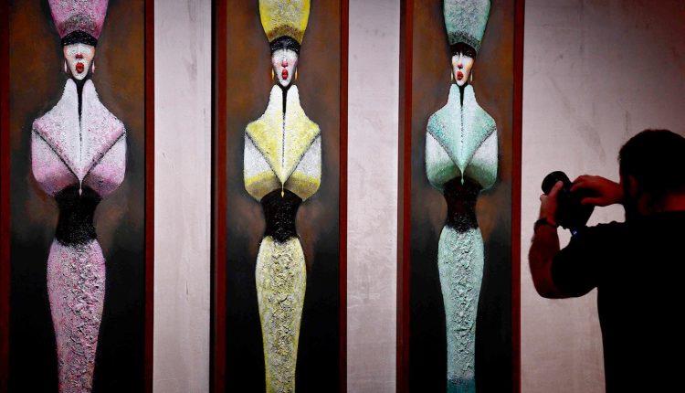 وأبرزت الجوانب الجمالية لمختلف الحضارات، حيث نفذها بأساليب عصرية وتجريبية. واكتظ المعرض الذي أقيم في «دن غاليري» في