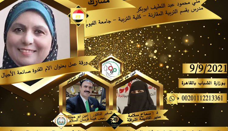 أفادت ا.د مني عبداللطيف ان الوظيفة الأساسية والمحورية للأم هي تربية أولادها والسعي بهم إلى أن يصيروا أفراد صالحين في المجتمع وقد اكدت د سماح سلامه امين عام المؤتمر الدولي للمرأة القيادية ان من افضل الابحاث المقدمة للمؤتمر بحث ” الام القدوة صانعة الأجيال ” للدكتورة منى أبو بكر. حيث قالت