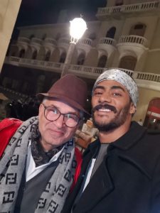 واضاف ماركو انه سعيد بالوقوف امام الفنان محمد رمضان في اكثر من مشهد فهو من سيبيع له اول حذاء جلد ايطالي