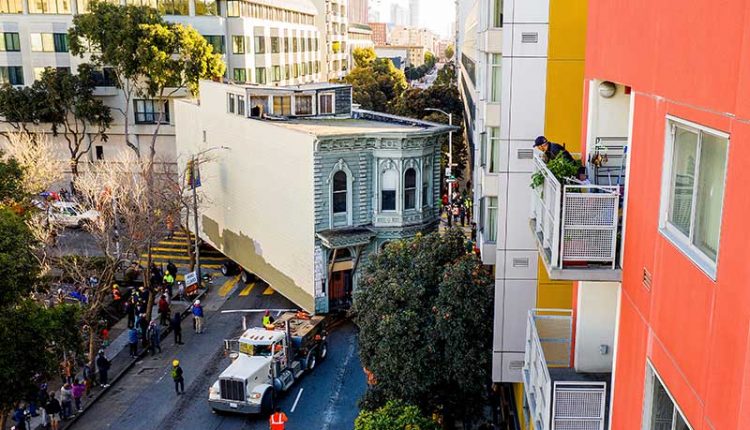 بينما ينتقل المنزل، بسرعة قصوى تبلغ 1 ميل في الساعة، إلى العنوان الجديد “635 – شارع فولتون”.