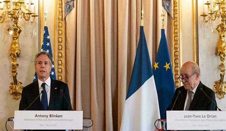 بحث وزير الخارجية الأمريكي أنتوني بلينكن في اتصال هاتفي مع نظيره الفرنسي جان إيف لودريان المبادرات في مجال الدفاع وأمن الاتحاد الأوروبي.