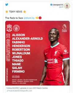 تشكيل ليفربول أمام مانشستر سيتي في الدوري الانجليزي