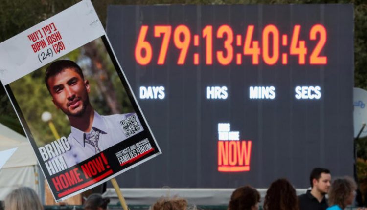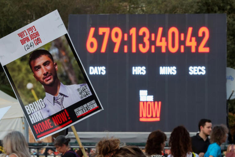 وفي ميدان الرهائن في تل أبيب الذي أصبح رمزا للاحتجاجات خلال الحرب، رفع مساء السبت علم إسرائيلي ضخم وصور للرهائن المحتجزين في قطاع غزة.