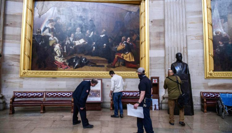 وتلقى الشرطي براين سيكنيك ضربة على رأسه بمطفأة حريق أثناء تصديه لمثيري الشغب الذين اقتحموا قاعات الكونغرس، وفق «فرانس برس».