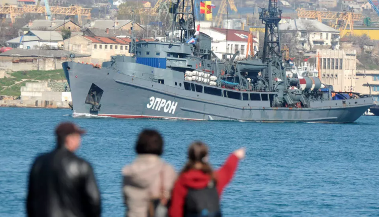 هذه السفينة الحربية حدود روسيا قبالة سواحل شبه جزيرة القرم.