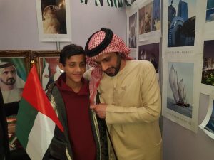 أوضح أن جناح دولة الإمارات تضمن مجموعة من الصور والكتب والمشغولات اليدوية التراثية والمأكولات وغيرها والتي تبين الإرث الإماراتي الأصيل الذي تحرص الإمارات العربية المتحدة على إبرازه والاهتمام به والحفاظ عليه، حتى مع التقدم التي تشهده الدولة ومع منافستها للدول المتقدمة، إلا أن التراث هو الأساس، ولابد من الحفاظ عليه، ونشره بين الشعوب ليعكس التاريخ الحقيقي لها، ويطلع عليه الجميع للتعرف على الإمارات.