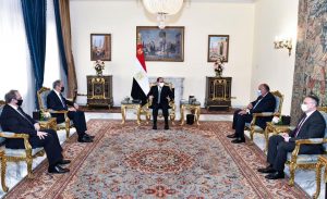 كما تم مناقشة تطورات أهم الملفات الإقليمية، حيث أكد الرئيس الموقف الاستراتيجي الثابت لمصر القائم على استعادة الأمن والاستقرار وإرساء عناصر استدامته في دول المنطقة المتأثرة بالنزاعات، وإعادة بناء مؤسساتها الوطنية لفتح آفاق التنمية.