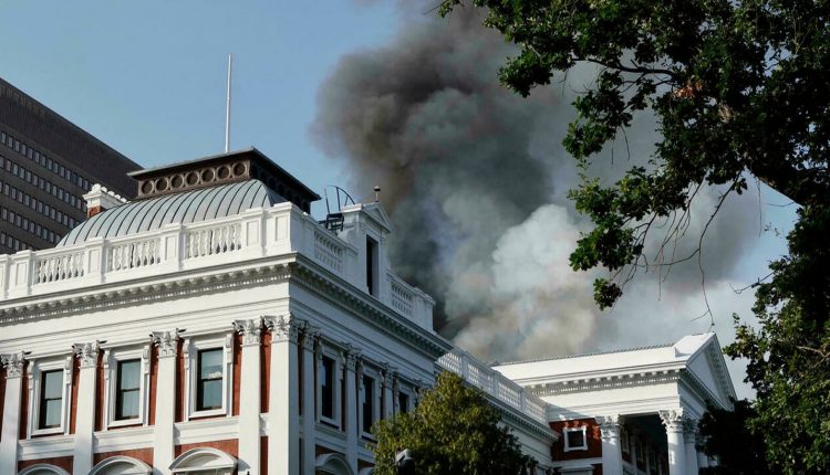 وأظهرت الصور ومقاطع الفيديو المنشورة على وسائل التواصل الاجتماعي الدخان والنيران المتدفقة من البرلمان في كيب تاون.