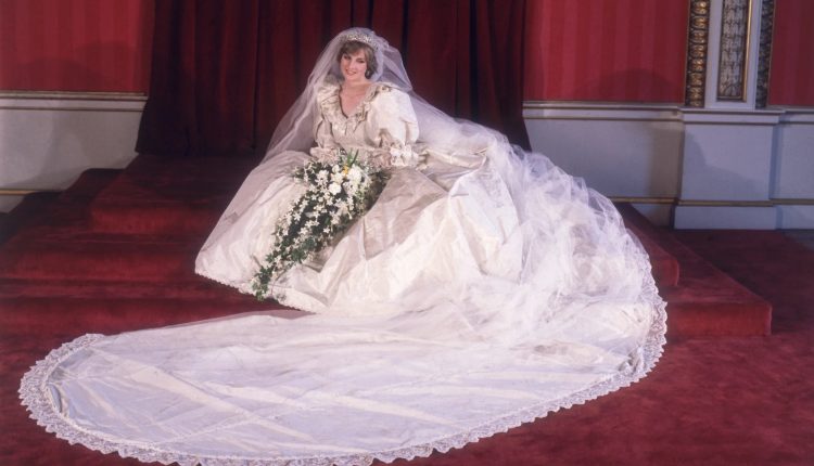 وارتدت الأميرة ديانا الفستان الشهير، الذي يتميز بقطعة خلفية ممتدة (تراين) يبلغ طولها 25 قدماً، وهي الأطول في التاريخ الملكي، في حفل زفافها عام 1981 على الأمير تشارلز في كاتدرائية سانت بول في لندن.