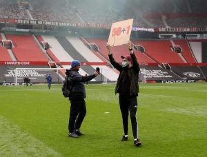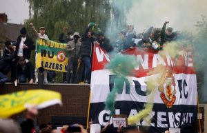 اقتحم عشرات من مشجعي مانشستر يونايتد، أرضية ملعب أولد ترافورد، ورفعوا لافتات وأشعلوا النيران، احتجاجا على ملاك النادي، عائلة غليزر الأميركية.
