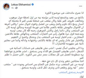 ، أوسه من غير المنتخب برده مكمل في النجاح بس إحساس وجوده في “منتخب مصر” ليه رونق