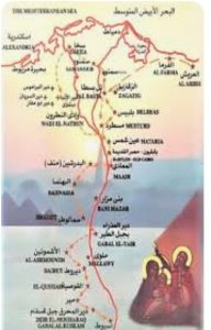 حيث بدأت رحلة دخول العائلة المقدسة من رفح بالشمال الشرقي للبلاد، مرورًا بالفرما شرق بورسعيد، وإقليم الدلتا عند “سخا بكفر الشيخ،” وتل بسطا بالشرقية، وسمنود بالغربية، ثم انتقلت إلى وادي النطرون في الصحراء الغربية حيث أديرة الأنبا بيشوى والسيدة العذراء “السريان”، والبراموس، والقديس أبو مقار.