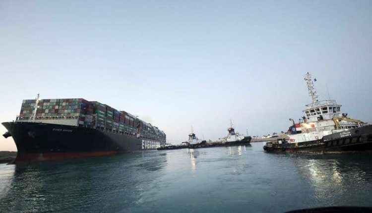 قناة السويس بأعمال التكريك التي تمت حول السفينة الجانحة بالقناة.