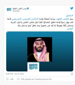 وأكد ولي العهد السعودي أن “سياسة المملكة العربية السعودية بقيادة خادم الحرمين الشريفين الملك سلمان بن عبدالعزيز آل سعود، قائمة على نهج راسخ قوامه تحقيق المصالح العليا لدول مجلس التعاون والدول العربية، وتسخير كافة جهودها لما فيه خير شعوبها، وبما يحقق أمنها واستقرارها”.