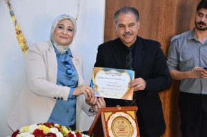 الدكتور “عصام هانى” المدير الأسبق لابحاث الكبد بدرع التميز عن إنجازات إدارة العلاقات العامه والاعلام للاستاذة الاعلاميه منال عبد السلام
