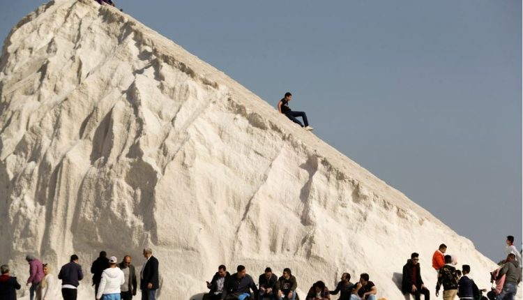 على شاطئ قناة السويس بتلال الملح للتزلج بدلا من الثلوج النادر سقوطها