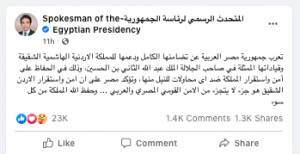أعربت مصر عن تضامنها الكامل ودعمها للأردن وقيادته