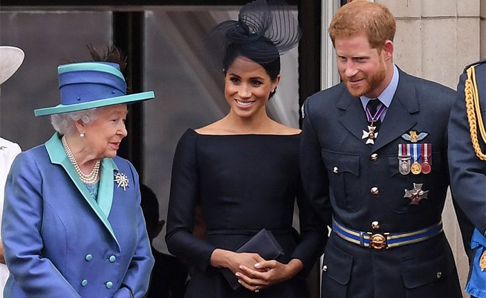 مع الأمير هاري حفيد الملكة وزوجته ميجان.