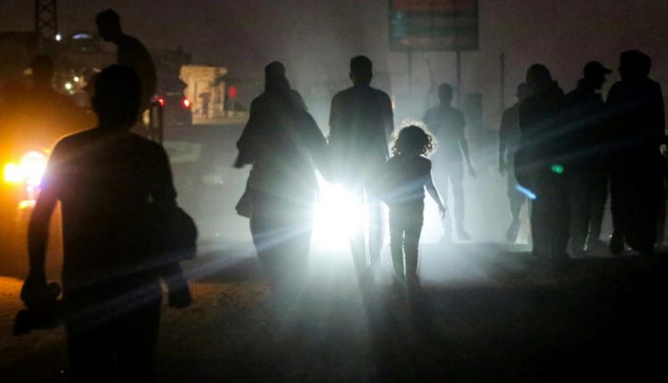 والى جانب المركبات، سار مئات من الفلسطينيين من مختلف الأعمار وقد غلبت عليهم علامات التعب والإرهاق الشديدين. وبدا رجال ونساء يحملون صغارهم أو يمسكون بيدهم، وآخرون مصابون أحدهم جلس على كرسي متحرك وطفله في حضنه، بينما استخدم رجل بترت ساقه اليسرى عكازين للتحرك.