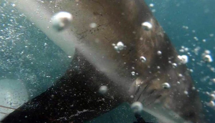 قرب سواحل نيوزيلندا، وهي اللقطة التي وثقتها كاميرا مثبتة بخوذة الصياد.