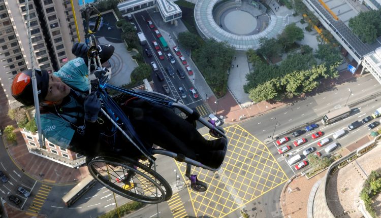 هونغ كونغ.. رجل يتسلق 250 متراً على كرسي متحرك