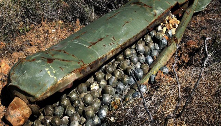 يقول موقع الصليب الأحمر الدولي إن الذخائر العنقودية أسلحة تتكون من حاوية تفتح في الهواء وتنثر أعدادا كبيرة من “القنابل الصغيرة” أو الذخائر الصغيرة المتفجرة تنتشر على مساحة واسعة.