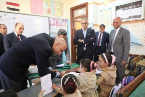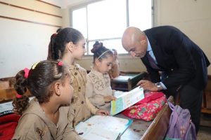 كما تضمنت الجولة زيارة لمدرسة “الحمراء الابتدائية”، والتي تضم ١١٠٠ طالب وطالبة، حيث تفقد الوزير والمحافظ فصول صفوف الأول والثانى والثالث والرابع الابتدائي.