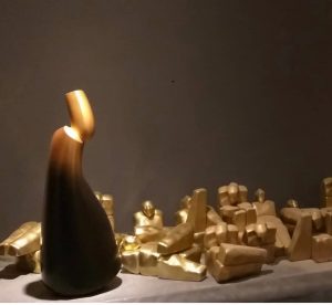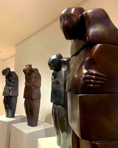 – ويضم المعرض ٣٠ قطعه نحتيه كبيره ومتوسطة الحجم ، استخدم فيهم النحات العالمى “خالد زكى” احجار مصريه كالكورتزت الأسود والحجر الأبيض الإيطالي والبرونز.
